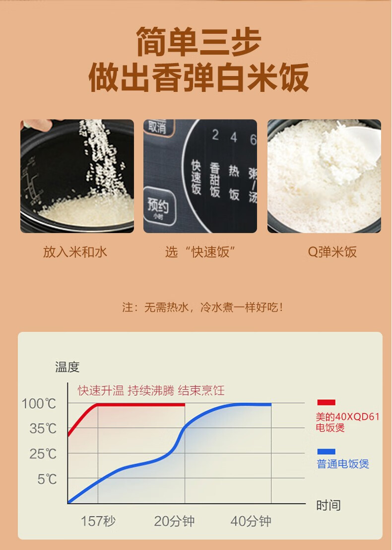 美的(Midea) 电饭煲 微压焖香蒸汽 5层内胆 MB-FB40XQD61