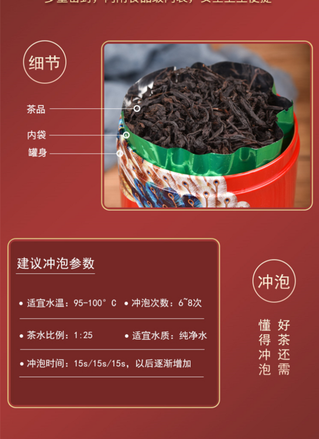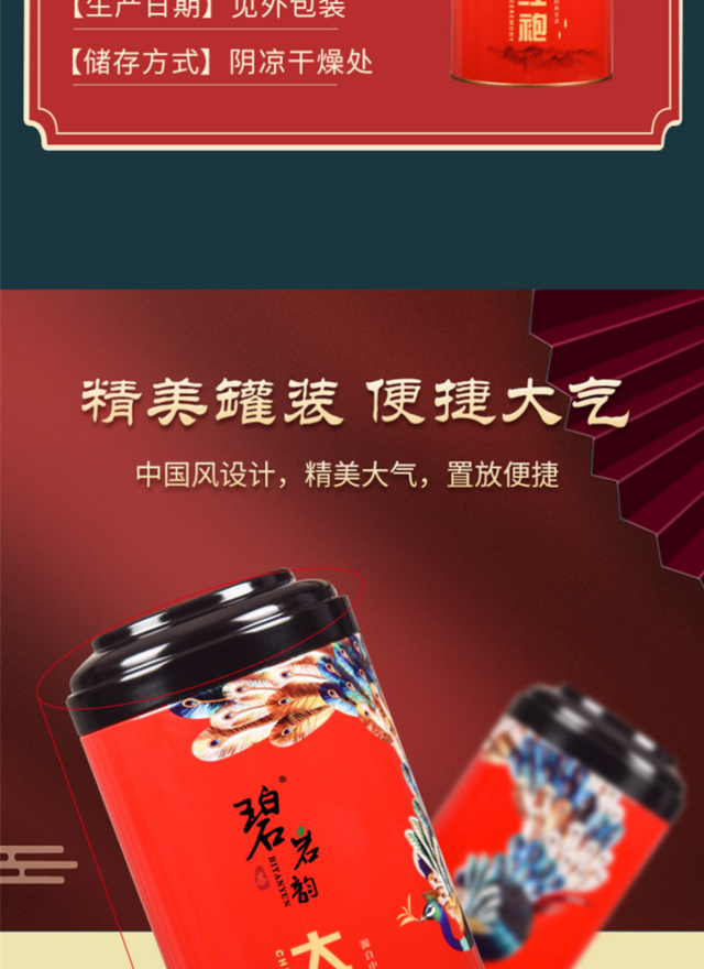 碧岩韵茶 茶叶 红茶 孔雀红罐大红袍200g
