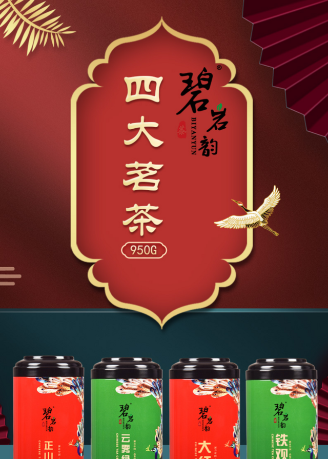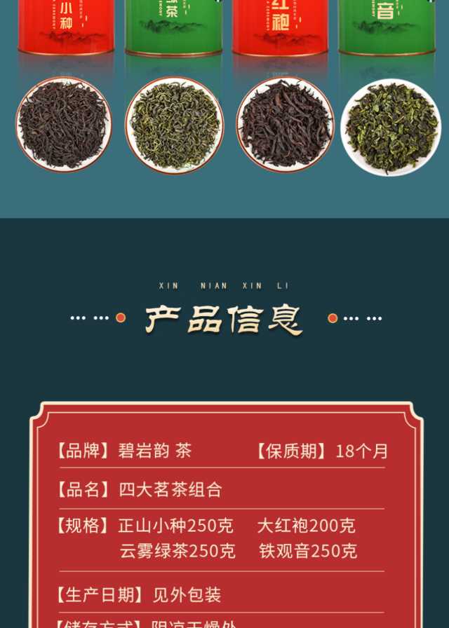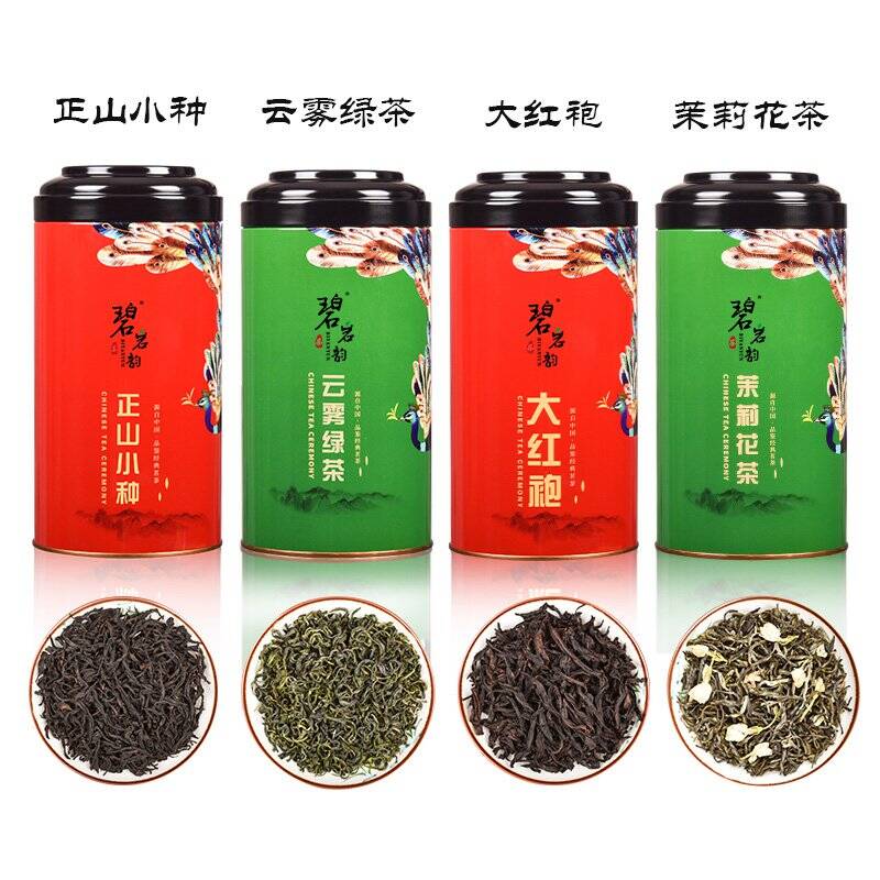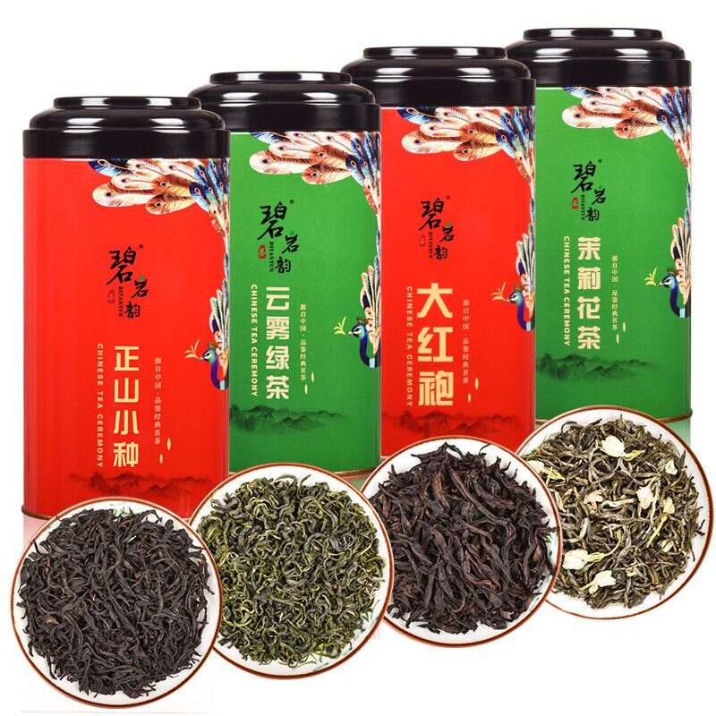 碧岩韵茶绿茶红茶四大名茶云雾绿茶茉莉花茶正山小种大红袍共950g组合装