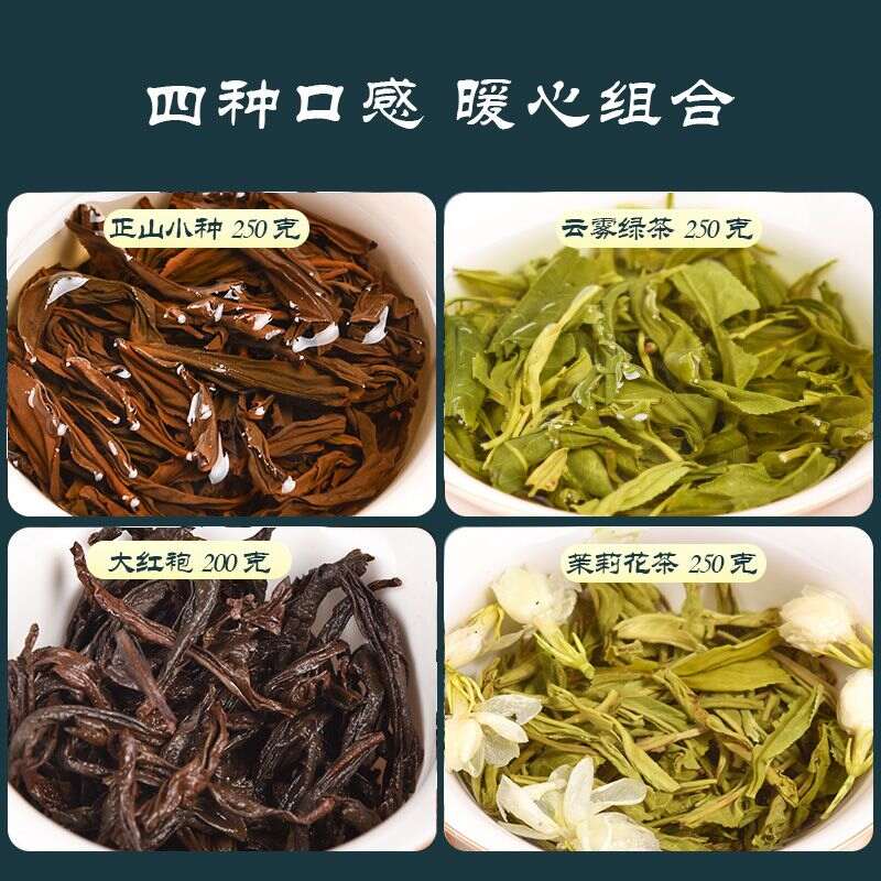 云雾绿茶250g+茉莉花茶250g+正山小种250g+大红袍茶200g x1