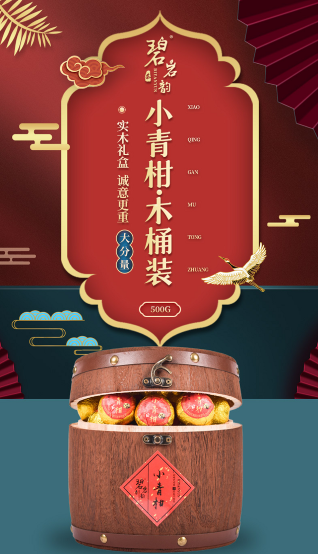 碧岩韵茶 茶叶木桶5年小青柑500g五年熟普