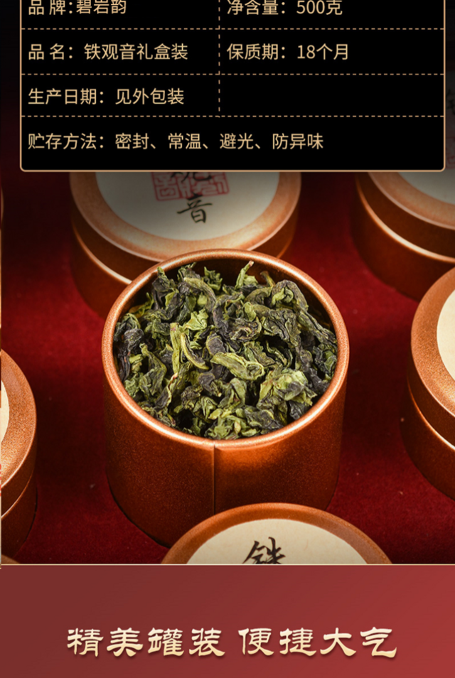 碧岩韵茶茶叶绿茶私藏30罐铁观音500g特级浓香