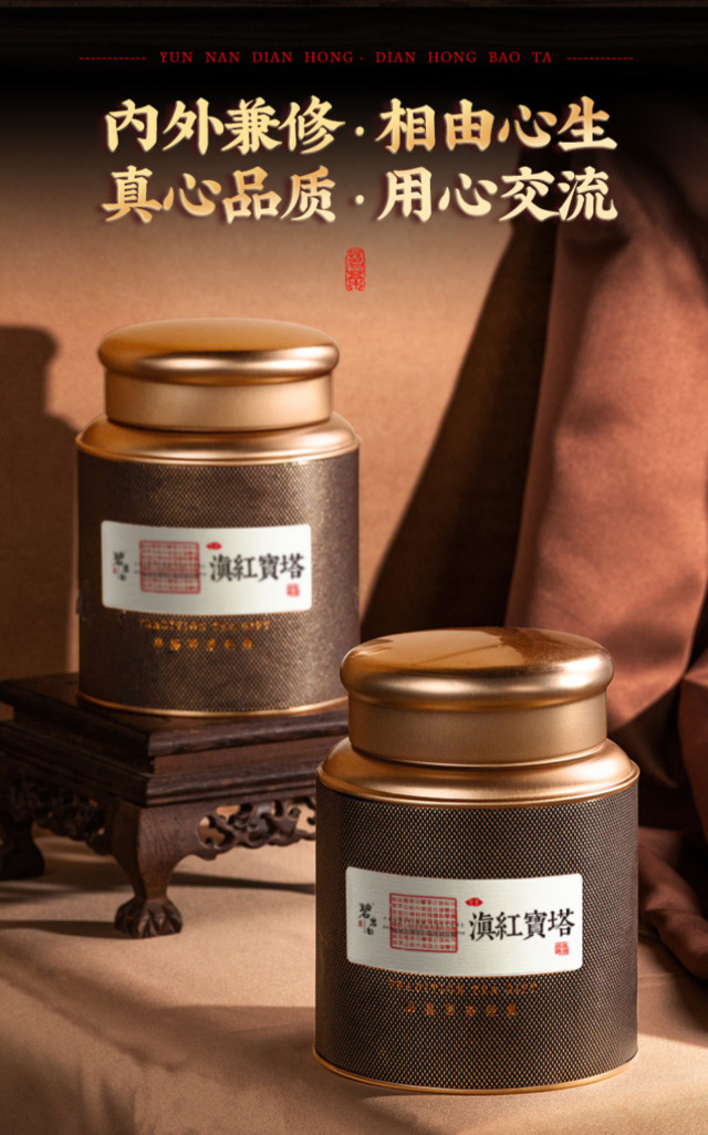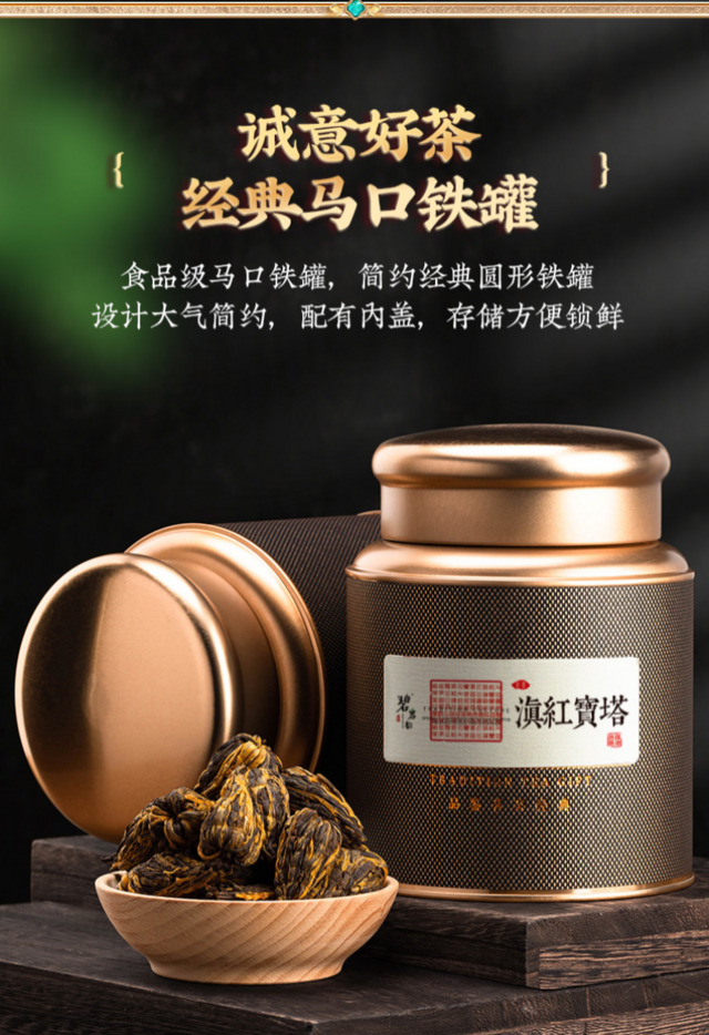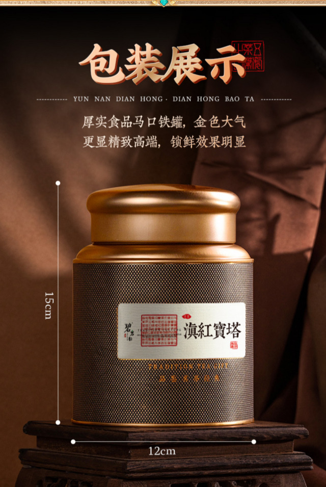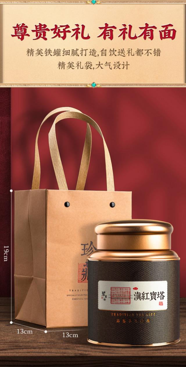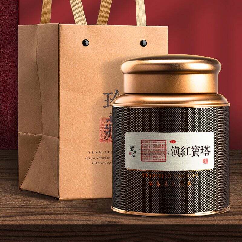 碧岩韵茶茶叶黑罐滇红宝塔250g礼袋装