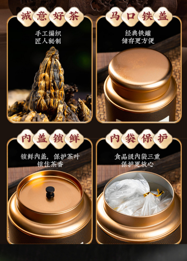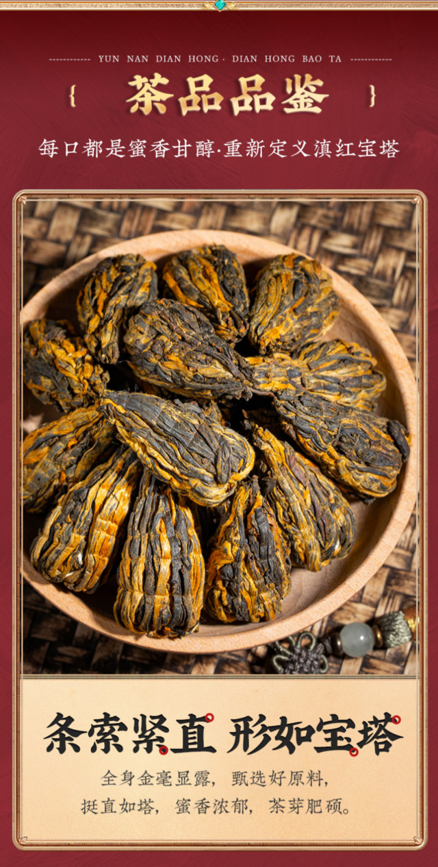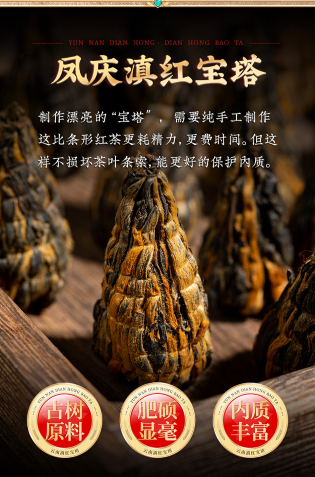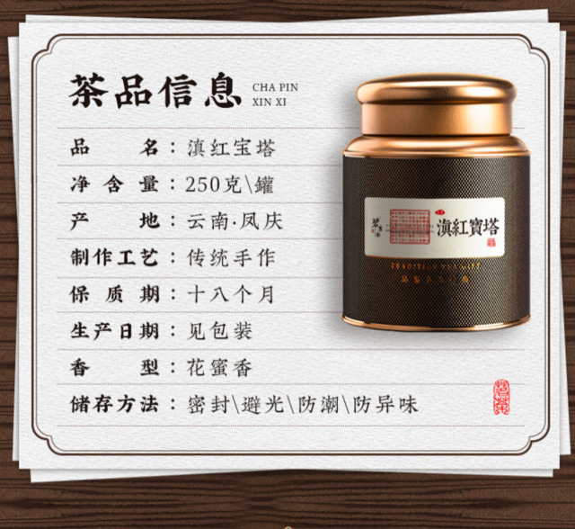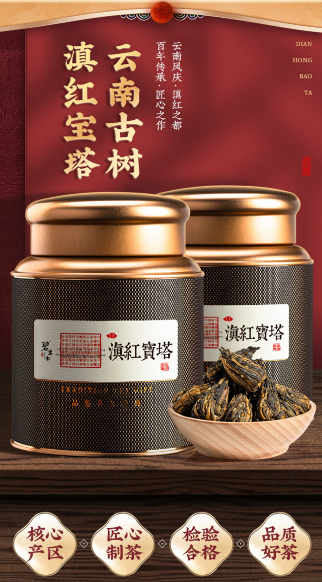 碧岩韵茶茶叶黑罐滇红宝塔250g礼袋装